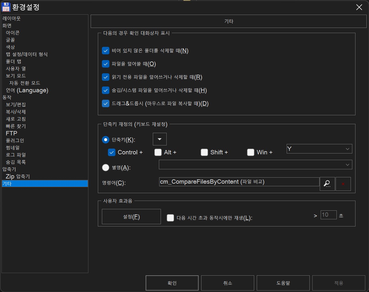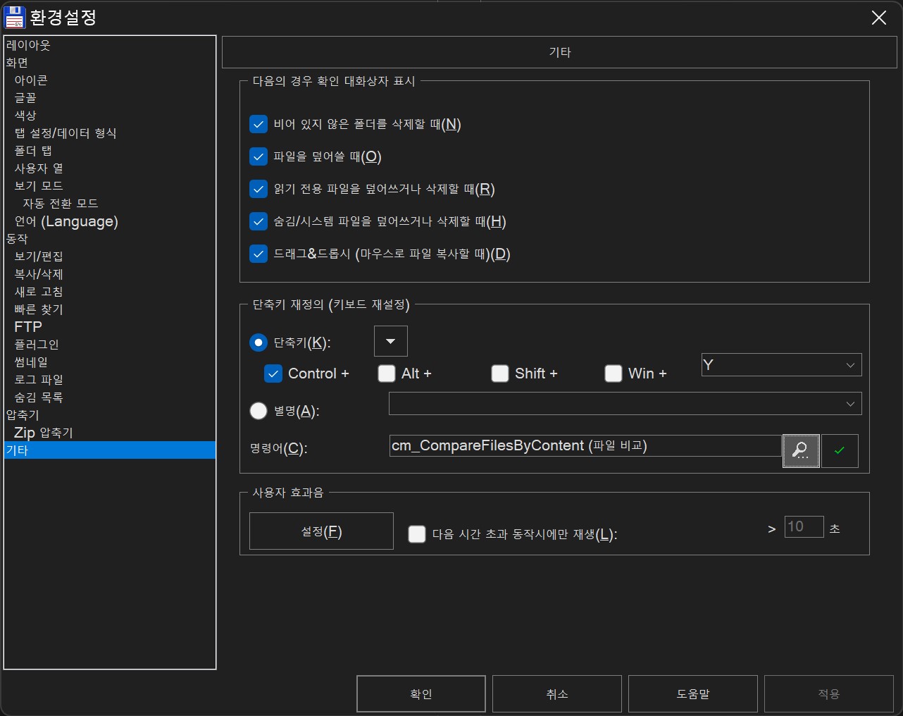 커스텀 단축키 만들기: 토탈 커맨더 명령 지정