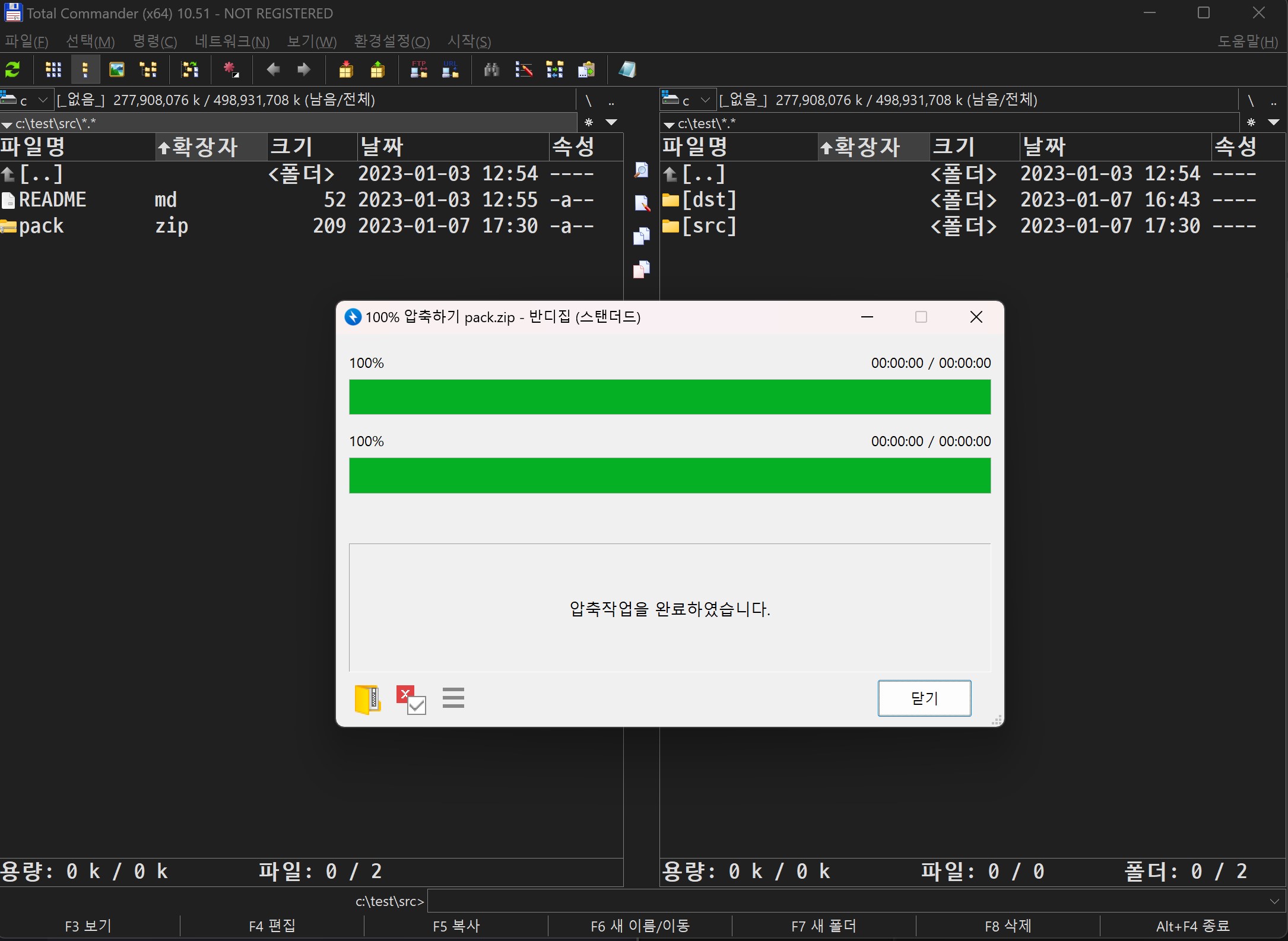 토탈 커맨더에서 압축하기