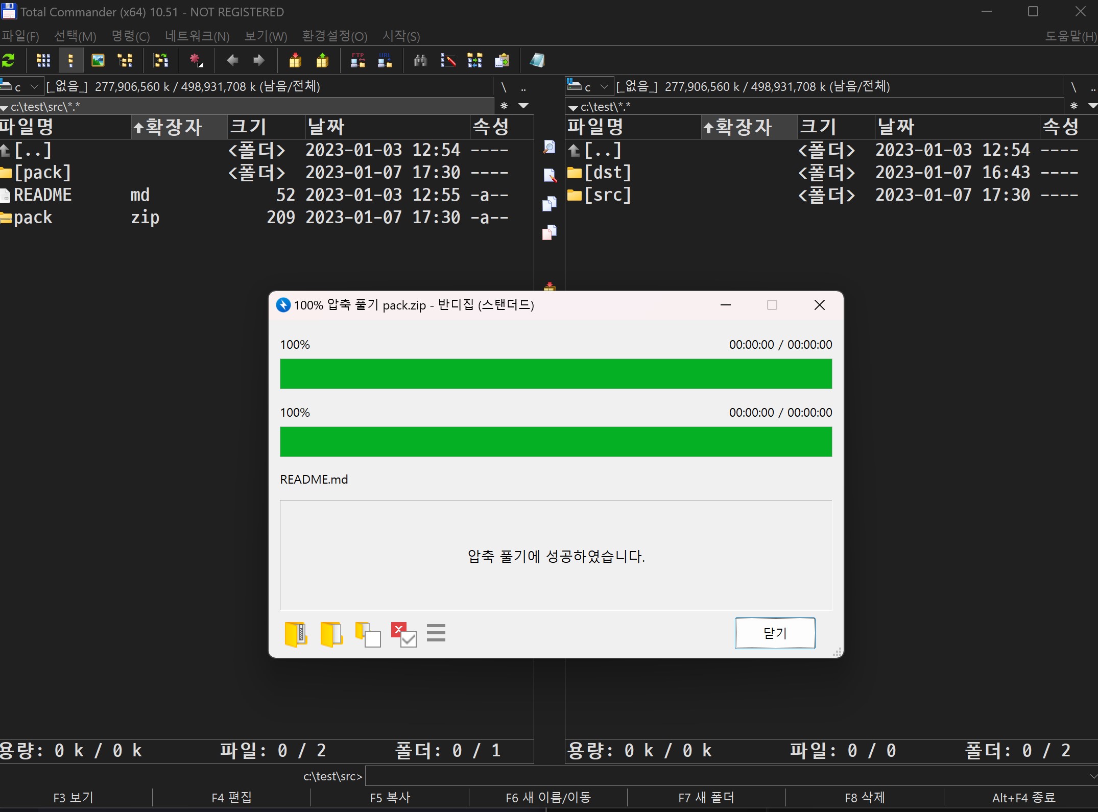 토탈 커맨더에서 압축풀기